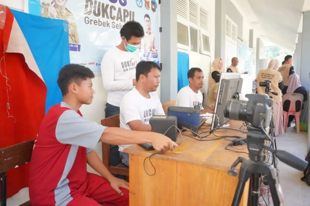 Mamuju –Dalam rangka melakukan percepatan perekaman KTP elektronik (e-KTP) , Dinas Kependudukan dan Pencatatan Sipil (Dukcapil) Provinsi Sulbar bekerjasama Disdukcapil Mamuju melakukan perekaman KTP bagi anak sekolah. Dipusatkan di SMA 2 Mamuju, Jumat 28 Juli 2023.
